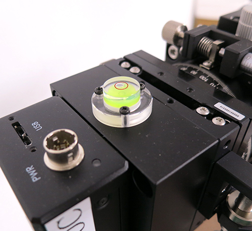 水平器でカメラの水平を確認しながらゴニオメーターでカメラを微調整できます。