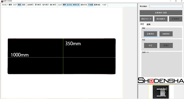 ●1mまでの長尺物で、かつ平板・フィルム・シートなどの薄物長方形・正方形の縦と横ラインの自動画像寸法測定が高精度で可能!(※1)