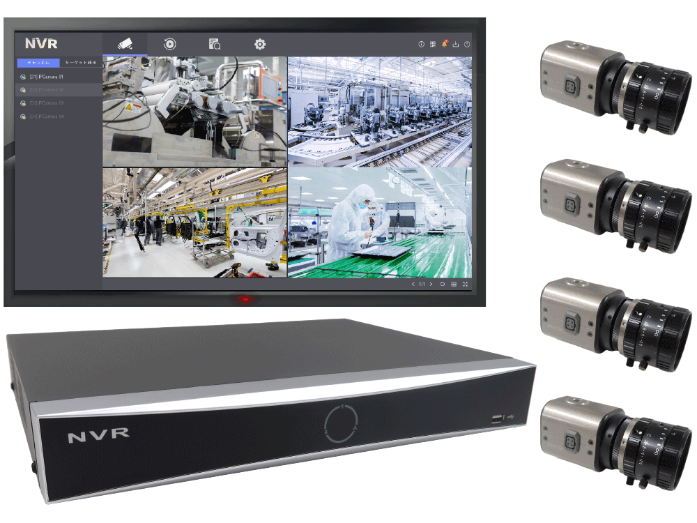 しかしIPカメラとNVRを使用すれば接続するだけで複数台の運用が可能です。