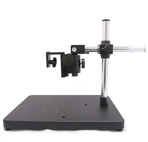 カメラスタンドとは、カメラを安定して固定し、撮影位置や角度、高さを調整するための支持装置です。振動を抑えた安定設置により、ブレのない撮影や再現性の高い検査環境を実現します。卓上用から大型ワーク対応タイプまで用途に応じた種類があり、外観検査、マイクロスコープ観察、研究・作業用途で幅広く使用されています。