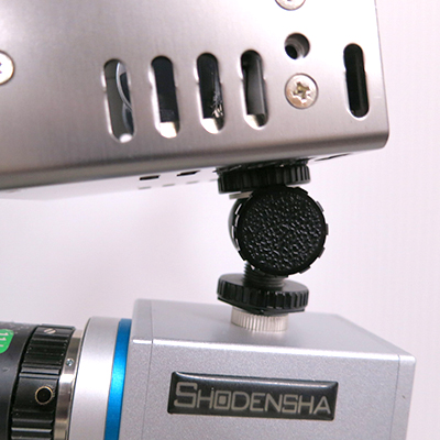 そのため治具を使い、ストロボ照明をカメラに装着することができます。