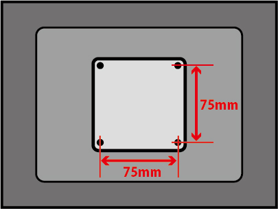 モニタ背面の自立用のスタンドを外すと、この「VESA75」という規格になります。