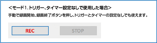 ●またトリガー信号とタイマーの多彩な組み合わせで録画開始/録画停止を制御して、 必要な時間だけ録画することもできます。