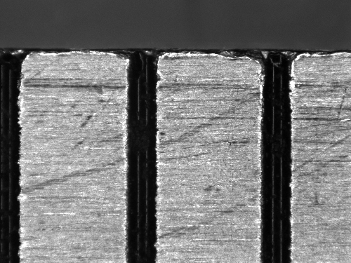 平行光透過照明採用で対象物への光の回り込みが少なく、輪郭が鮮明、エッジが強調され高精度な寸法測定を実現 。