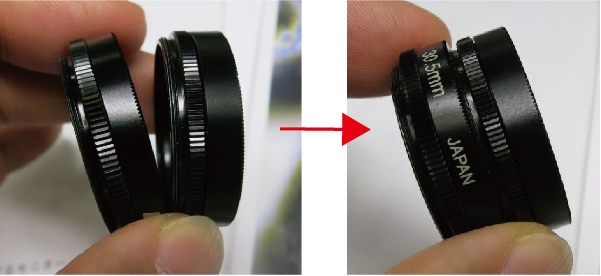 レンズに装着するフィルターは、通常、「同じサイズの雄ネジと雌ねじ」 が切られています。