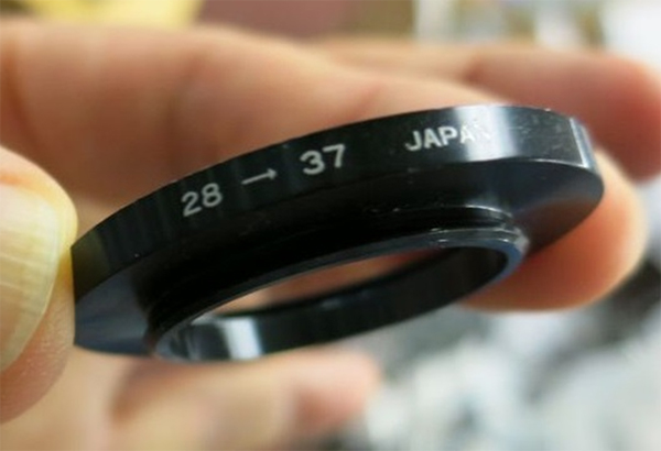 (下記は、28mm口径のレンズに37mmフィルターを付けるためのリングです。)